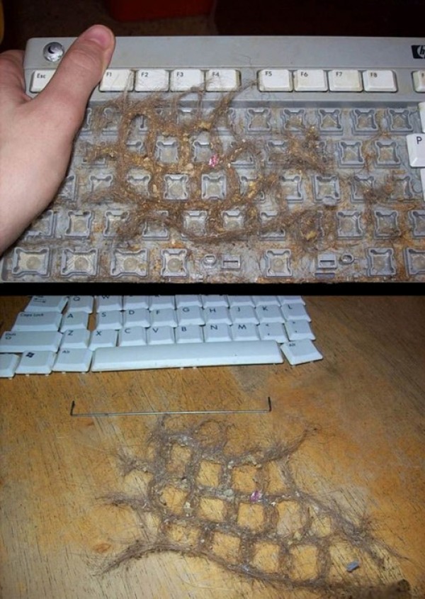 คน ติดคอม ติดเนทหลายๆคน คงคุ้นชินกับพฤติกรรมการกินขนมขบเคี้ยว หรือแม้กระทั่งกินอาหารมื้อหลักหน้าจอคอมพ์ หรือแม้กระทั่งสาวๆเองที่ชอบหวีผมแต่งหน้าบนโต๊ะทำงาน เวลาว่างก็เม้าท์พ่นไฟแชทหน้าเวบแคม รู้หรือไม่ ว่าคีย์บอร์ดนั้นเป็นแหล่งสะสมเชื้อโรคชั้นดี โดยเฉพาะเศษอาหาร ผิวหนัง เหงื่อไคลต่างๆ ที่ผู้ใช้คอมทำตกลงไปในคีย์บอร์ดแล้วไม่ค่อยให้ความสนใจ เนื่องจากเพราะมันตกลงไปในร่อง ทำให้ยากต่อการมองเห็นว่าสกปรกและยากต่อการทำความสะอาด เป็นที่มาว่าทำไมจึงไม่มีใครสนใจ จะทำความสะอาดกันเท่าไหร่นัก จึงทำให้คีย์บอร์ดกลายเป็นแหล่งหมักหมมเพาะพันธุ์เชื้อโรคชั้นดี รายงานระบุว่าคีย์บอร์ดที่ได้รับการสำรวจนั้นสกปรกกว่าฝานั่งชักโครกถึง 40 เท่า แต่ถึงขนาดต้องใช้วิกซอลเข้มข้น 40 เท่าราดคีย์บอร์ดเพื่อทำความสะอาดด้วยรึเปล่ารายงานไม่ได้ระบุไว้
