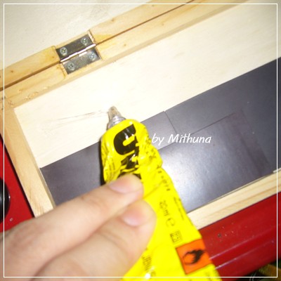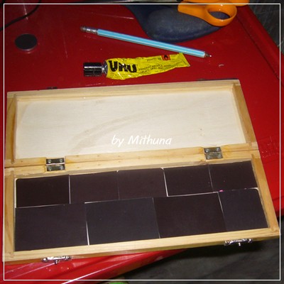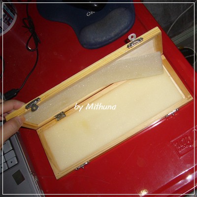 เราใช้กล่องไม้แบนๆ เป็นกล่องอุปกรณ์เพชรพลอยของแม่ที่ไม่ใช้แล้ว