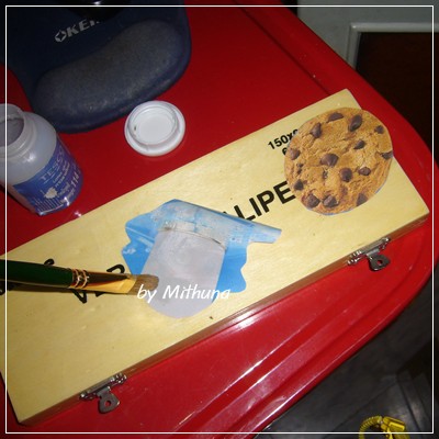 อ้อ ถ้าเลือกกล่องที่มีลวดลาย แต่ไม่ชอบลายนั้น ใช้วิีธีพ่นสีสเปรย์ทับลายก่อนจะตกแต่งด้วยสีอะคริิลิกก็ได้นะคะ หรือจะทาสีอะคริลิกแล้วค่อยระบายลายทับ หรือจะตัดแปะรูปก็ได้ แล้วค่อยเอาแล็กเกอร์ฉีดเคลือบ