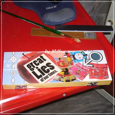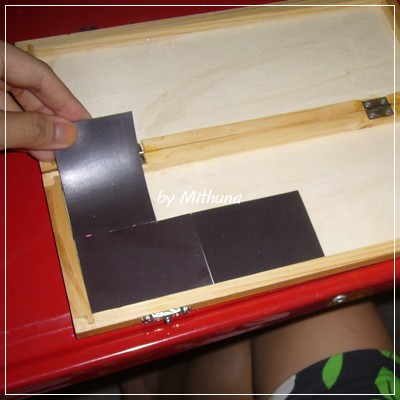 อ้อ ถ้าเกิดใช้กล่องดินสอเหล็กแทนที่จะเป็นกล่องไม้ ไม่จำเป็นต้องเอาแผ่นแม่เหล็กติดที่ก้นกล่องนะคะ แต่แค่ใช้ depot pan ที่ติดแผ่นแม่เหล็กก็สามารถแปะได้อยู่แล้ว