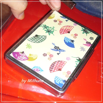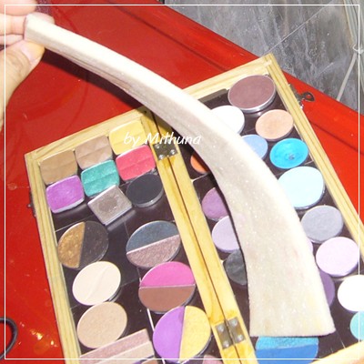- กล่องอะไรก็ได้ ขอให้เป็นกล่องแบนๆ ตัวกล่องแข็งแรง (เวลาใส่อายแชโดว์จะได้ไม่เสียหาย) หรือกล่องดินสอเหล็กแบบที่เด็กๆ ใช้ใส่ดินสอก็ได้เหมือนกัน