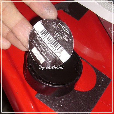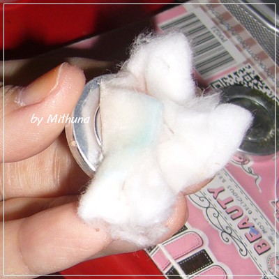 แปะสำลีไว้แป๊บนึงแล้วค่อยๆ เช็ดจนกาวออกหมด (อันนี้เป็นตลับอายแชโดว์อื่นนะคะ พอดีของ L'oreal HIP ไม่ได้ถ่ายรูปชัดๆ ไว้)