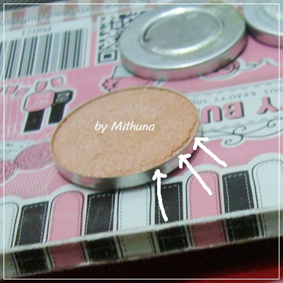 - ควรทำใจในการ depot ก่อนว่าเราอาจจะทำอายแชโดว์แตกค่ะ ถ้าเกิดแงะไปแล้วเห็นท่าไม่ดี หยุดได้นะคะ แต่ถ้าเห็นขอบระหว่าง pan กับอายแชโดว์มีร่องแยก ควรจะซ่อมอายแชโดว์ด้วยแอลกอฮอล์เพื่อให้อายแชโดว์ติดกับตัว pan เหมือนเดิม ไม่งั้นเวลาพกไปไหน หรือกระแทกอะไรแรงๆ อายแชโดว์อาจจะแตกได้